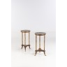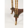 Pair of circular mahogany, burlwood and gilt bronze tables, the circular top resting on imitation bamboo uprights, standing on small sa