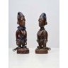 Pair of Ibedji with labret, Yoruba, Nigeria Wood, glass pearls and bronze Late 19th century H : 25,5 and 26 cm