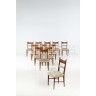 Paolo Buffa (1903-1970) Set of twelve chairs Elm wood and velvet Model created circa 1950 H 95 x L 50 × W 50 cm