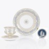 Paris Médaillon en biscuit de porcelaine dure à décor en relief sur fond bleu d’une figure de Minerve tenant une lance et un bouclier près d’une borne surmontée d’un buste. Signée Senff au revers en creux. Fin du XVIIIe siècle, début du XIXe siècle Ø 8 cm