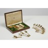 ten vermeil tea spoons, a tea strainer and a tea spoon.