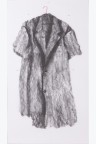 Jex, elements of a coat hanger and buttons between two Plexiglas sheets