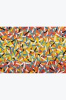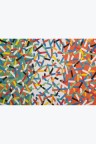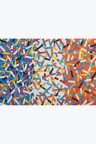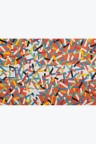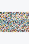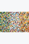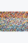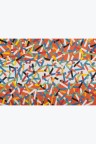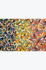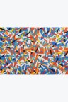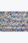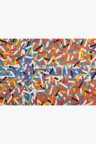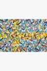 Collage of cut-out silkscreen prints on a flag background in their original case