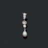 Pendentif en or jaune 18k (750‰) et argent (800‰) agrémenté de diamants taille ancienne, d'un diamant taillé en rose et d'une perle goutte fine en pampille. Poids brut : 2,8 g.