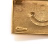 Modernist pendant/brooch in 18k yellow gold (750‰), opal cabochon and a small diamond Bears a signature Laloux Dimensions : 4 x 4 cm Gross weight : 18,5 g