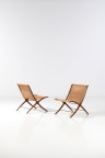 & Orla Mølgaard-Nielsen (1907-1993) Pair of 'X' lounge chairs Beechwood and rattan Edited by Fritz Hansen Model created circa 1955 H 73 × L 56 × W 70 cm