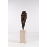Brown patina bronze on a travertine plinth