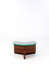 Side table Blackened wood, acajou and glass Creation date: circa 1950 H50ר95cm Used condition Scratches on the glass top Chips and scuffs to the veneer A significant chip in the wood at the base Soiling on the wood