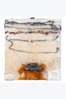 Mixed media, rust, iron, tobacco, salt and metal on embossed paper mounted on panel