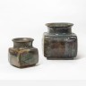 Set of two vases Stoneware, turned coL and copper oxide enamels Signed Creation date: circa 1979 Large: H 25 × W 24.5 cm Small: 17.5 × W 15cm