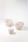 Pair of armchairs model F560, 'Mushroom' and footrests
