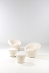 Pair of 'Mushroom' armchairs, model F560, and two footrests