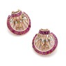 • Pierre STERLÉ Years 1945-50s Pair of clip earrings with a radiating design in 18K pink gold (750‰), adorned with diamonds and spinel. Maker’s mark Dimensions: 2,7 x 3 cm Gross weight: 18 g