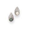Pierre STERLÉ Pair of ear clips "Feuilles" in 18k grey gold (750‰) and round and baguette-cut diamonds, each adorned with a cultured pearl