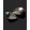 Pierre STERLÉ Pair of ear clips "Feuilles" in 18k grey gold (750‰) and round and baguette-cut diamonds, each adorned with a cultured pearl (white for one and grey tinted for the other) Signed Gross weight : 15,6 g