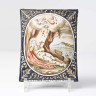 Plaque en émail peint polychrome avec rehauts de d'or représentant sainte Rosalie dans un médaillon avec rinceaux en relief dans les...