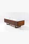 Sofa Teak veneer and fabric Edited by France and Son Manufacturer’s label Model created in the 1960s H 60×L 204×W 76cm