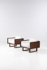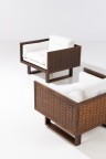 Pair of armchairs Teak veneer and fabric Edited by France and Son Manufacturer’s label Model created in the 1960s H 60×L 84×W 76cm
