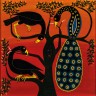 R. H. Bushiri (Tanzania) Untitled (Paon et oiseaux), c. 1960- 1970 Oil on masonite and original frame Signed on the bottom 61,5 x 61 cm