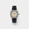 ROLEX. Oyster Perpetual. Années 1940 Montre bracelet d'homme en acier de forme tonneau. Cadran rond (le fond piqué et accidenté) à index bâtons, lunette cannelée, aiguilles en acier bleui. Mouvement automatique Oyster à remontage manuel. Signée et numérotée 350880. Diamètre : 3 cm.