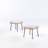 Raymond Loewy (1893-1986) Paire de tabourets Fer forgé et chêne Edition Mengel Furniture Co - Etiquette Date de création : années 1950 H 44 × L 45 × P 45 cm