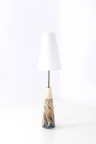Lamp Glazed ceramic, brass and fabric Edited by Søholm Stentøj Signed 'Søholm Denmark RN' beneath the base Model created circa 1960 H 157 × Ø 23 cm (with lampshade: H 157 × Ø 40,5 cm)