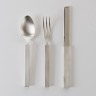 Roberto Baciocchi Ménagère comprenant 12 couteaux, 12 fourchettes et 12 cuillères Argent Date de création : 2009 Fourchettes : H 18 cm Couteaux : H 21 cm Cuillères : H 18 cm