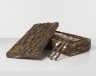 Roberto Baciocchi Ménagère comprenant 24 fourchettes, 12 cuillères et 12 couteaux Bois sauvage et métal argenté Date de création : 2012 Boite : H 16 × L 69 × P 30 cm Couteaux : H 22 cm Fourchettes : H 21 cm Cuillères : H 20 cm