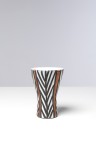 Horn vase Enamelled ceramic, herringbone pattern in paraffin reserves Created in 1960 Signed 'Capron' under the base H 15 X D 10 cm