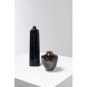 Roger Collet (1933-2008) Vase Glazed ceramic with luster Circa 1960 Monogrammed beneath the base H: 13 cm Also included is a bottle-shaped vase in blue glazed ceramic with leaf pattern Unsigned H: 29,5 cm