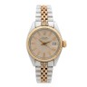 Lady's wristwatch in steel and 18k gold (750). Round case, back and crown secured with screws.