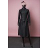 SAINT LAURENT RIVE GAUCHE Circa 1970 ENSEMBLE en satin de coton noir : casaque à petite basque, jupe évasée Env. T. S Provenance : Dany Simon, journaliste au magazine ELLE entre 1945 et 1980 iconographie : droits reservés