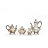 Service à thé-café en argent à décor rocaille comprenant pot à lait, sucrier, théière et cafetière poids total : 850 gr. environ (accidents à la théière)