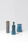 Three vases Glazed stoneware Edited by Gustavsberg Each with manufacturer's pictogram, incised signature, 'Stig L' and located, 'Gustavsberg' Models created circa 1960 H 24,5ר 7cm H 23,5ר 8,5cm H 16,5×L 12,5×W 9cm