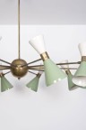 Pair of chandeliers Brass and painted metal Creation date: circa 1950 H 75 × Ø 120 cm