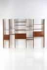 Walnut, brass, metal and leather