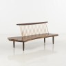 Studio George Nakashima Conoid Bench Banc Noyer d'Amérique et caryer Pièce unique Date de design : vers 1960 Marqué au fer Swarthmore Signé Mira Nakashima et daté February 24 2015 H 80 × L 193 × P 90 cm Bibliographie : - Mira Nakashima-"Nature Form & Spirit, The life and Legacy of George Nakashima"- Ed. Abrams, New-York -2003, banc similaire reproduit p. 176 - "Full Circle" catalog by Derek Ostergard, American Craft Council, 1989, p.157, Pharos Studio 2012 catalogue, p. 34