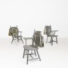 Studio Makkink & Bey (XXe) Bolder Chairs - Pièces Uniques Ensemble de six chaises Bois peint et couvertures en laine Edition limitée à 6 exemplaires uniques Date de création : 2007 H 99,5 × L 70 × P 51 cm H 97 × L 61 × P 61 cm H 101 × L 61 × P 62 cm H 96,5 × L 71 × P 54 cm H 132 × L 67 × P 49 cm H 80 × L 60 × P 48 cm