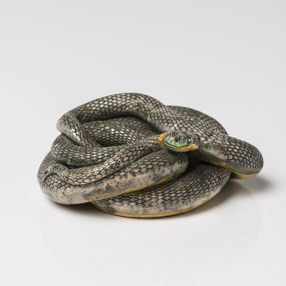 Suite de Palissy Couleuvre en terre vernissée à décor polychrome Fin du xIxe siècle L 13 cm