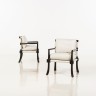 T.H. Robsjohn-Gibbings (1905-1976) Saber leg Paire de fauteuils Noyer et tissu Edition Peterson studio Date de création : 1947 H 80 × L 62, 5 × P 59 cm