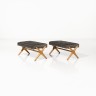 ƒ T.H. Robsjohn-Gibbings (1905-1976) Paire de tabourets Bois et velours Edition Widdicomb Date de création : vers 1950 H 37 × L 87 × P 46 cm