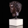 Tête de femme à l’antique en tilleul sculpté en ronde-bosse. Coiffre aux mèches ondulées retenue à l’arrière par un chignon et un bandeau sur le front ; yeux aux paupières ourlées, nez droit, bouche entrouverte avec lèvre inférieure charnue. XVIIe siècle H 29 cm (petites fentes)