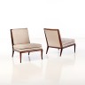 T. H. Robsjohn-Gibbings (1905-1976) Paire de chauffeuses Noyer et tissu Edition Widdicomb Date de création : 1950 H 79 × L 66 × P 69 × A 35 cm