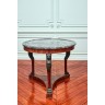 a circular walnut and stained wood table facon antique bronze, the top of grey Sainte-Anne marble resting on lion protome uprights (rep