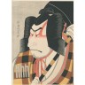 Tadamasa Ueno (1904-1970) Deux oban, tate-e et yoko-e, de la série Kabuki juhachi ban no uchi, Une des dix-huit pièces de kabuki, représentant deux acteurs de kabuki en gros plan. Signé Tadamasa suivi d'un sceau, éditeur Dairesha. 39,8 × 26,5 cm et 26,4 × 39,9 cm On y joint un oban tate-e par Kabukido Enkyo, acteur de kabuki tenant une hallebarde. 37 × 27,2 cm
