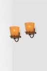 Pair of sconces Cast iron, wood slats and glass Edited by Taidetakomo Hakkarainen Model created circa 1930 H 28 × L 29 × W 24 cm