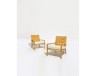 Terence Harold Robsjohn-Gibbings (1905-1976) Pair of armchairs Walnut, wool and cotton Manufacturer’s label beneath the seatings Creation date: 1955 H 81×L 66×P 81,5 cm