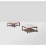 Terence Harold Robsjohn-Gibbings (1905-1976) Pair of stools Walnut and fabric Edited by Widdicomb Model created in the 1950s H 38 × L 71 × P 71 cm.