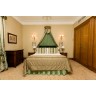 Bed headboard 110 x 160 cm, two half moon bedside tables 60 x 62 x 40 cm, two lamps H 50 cm