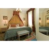 Headboard, 110x196 cm, two night tables, 57x60x35 cm, stool, 55x73x46 cm, bedcover and curtains